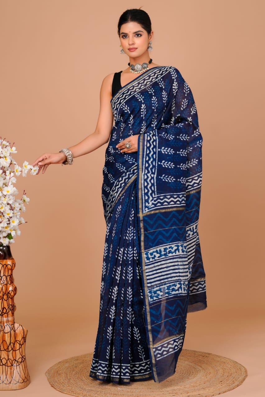 Chanderi sarees represent the historic town of Chanderi in Madhya Pradesh. Chanderi is a traditional ethnic fabric. Chanderi fabric is produced by weaving in silk and golden Zari characterized by its lightweight, sheer texture and fine luxurious feel.